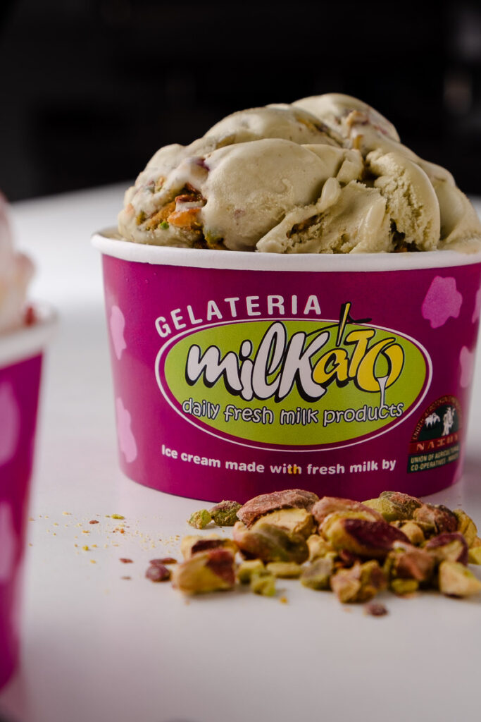 We get down to work very early in the morning to make sure our ice cream is as fresh as it can get. Our ice cream is made exclusively from fresh Naxian milk, as we strongly believe that we should make as much use of our local resources as possible, without adding any preservatives or ingredients of unknown origins. Besides, you are more than welcome to watch the whole ice cream-making process in our premises (of course you would excuse us for not revealing every little secret of our recipes!).